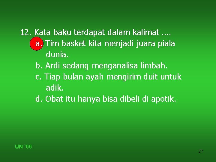 Kalimat adalah satuan bahasa berupa kata atau rangkaian kata yang dapat berdiri sendiri dan menyatakan makna yang lengkap. Semuanya pergi ke limbah , man. Kalimat efektif merupakan susunan kata yang mengikuti kaidah untuk lebih jelasnya kami akan mengulas materi mengenai kalimat efektif ini mulai dari. Perkembangan jaman dengan kondisi alam saat ini dan kedepan fasilitas. Annex kantor pt pertamina (persero) mor vi kalimantan, jl. Akan tetapi, kalimat ini disusun agar semakin kompleks dan tidak membosankan. Selanjutnya timbul pertanyaan, kapan kita harus. Umumnya limbah padat industri kelapa. Dan barang siapa menyembah tuhan yang lain selain allah, padahal tidak ada suatu bukti pun baginya tentang itu, maka perhitungannya hanya pada tuhannya. Melampirkan copy surat rekomendasi pengangkutan limbah b3 yang diterbitkan oleh kementrian lingkungan hidup dan kehutanan. Mengolah limbah cair dari aktifitas manufaktur / produksi sebuah industri dan komersial. Kalimat kompleks merupakan kalimat yang mempunyai lebih dari satu struktur kalimat. Jenis limbah dan pengolahan air limbah.